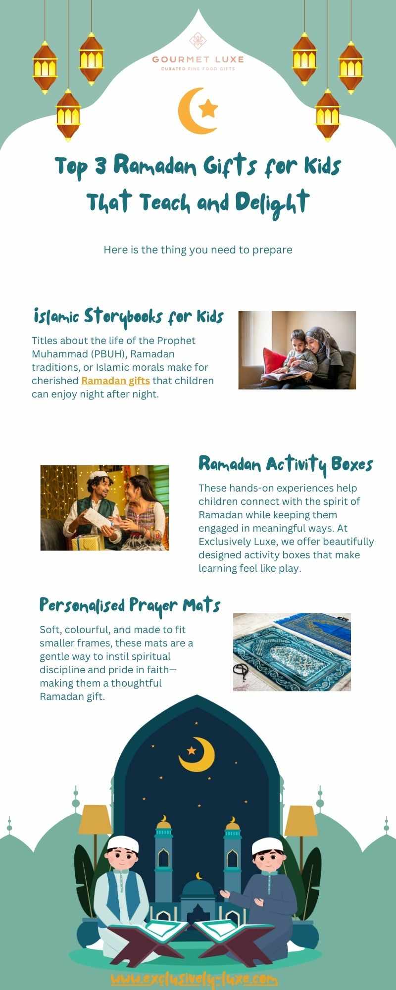 Find the Top 3 Ramadan Gifts for Kids That Teach and Delight from Exclusively Luxe. These thoughtful gifts blend fun with learning to inspire young minds during the holy month. Perfect for encouraging reflection, kindness, and creativity. Shop meaningful Ramadan gifts kids will cherish.